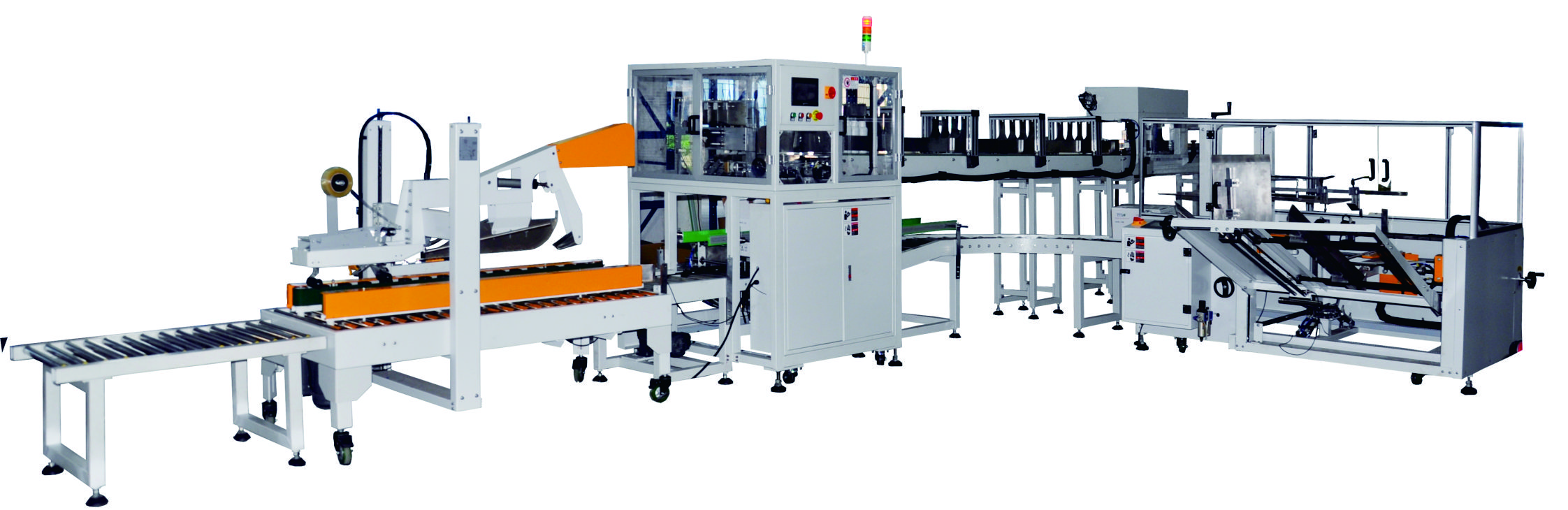 1)應(yīng)用范圍廣,點(diǎn)地面積小,可單機(jī)使用,適用于各種規(guī)格的瓶裝、壺裝、桶裝產(chǎn)品自動(dòng)裝箱,也可與灌裝機(jī)等聯(lián)機(jī)使用,完成其后道包裝工序。